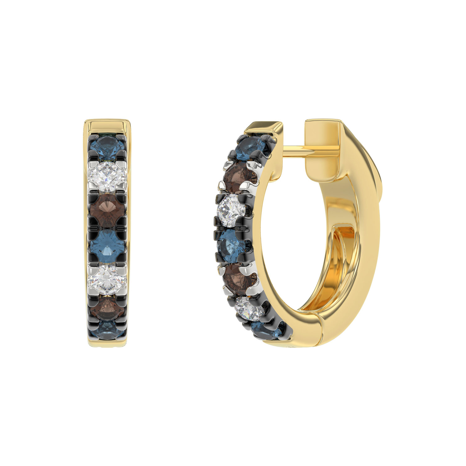 Home Earrings 14K Yellow Gold 0.50CT Multi-Color Diamond Huggie Hoop Earrings Round Cut Blue, White Round &Dark Brown Diamonds