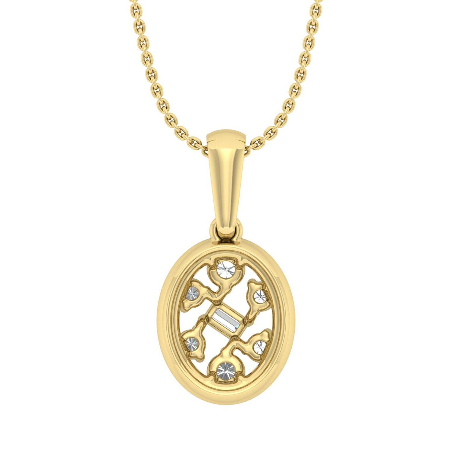 Home Pendants/charms LADIES PENDANT WITH CHAIN 0.20CT ROUND/BAGUETTE DIAMOND 10K YELLOW GOLD