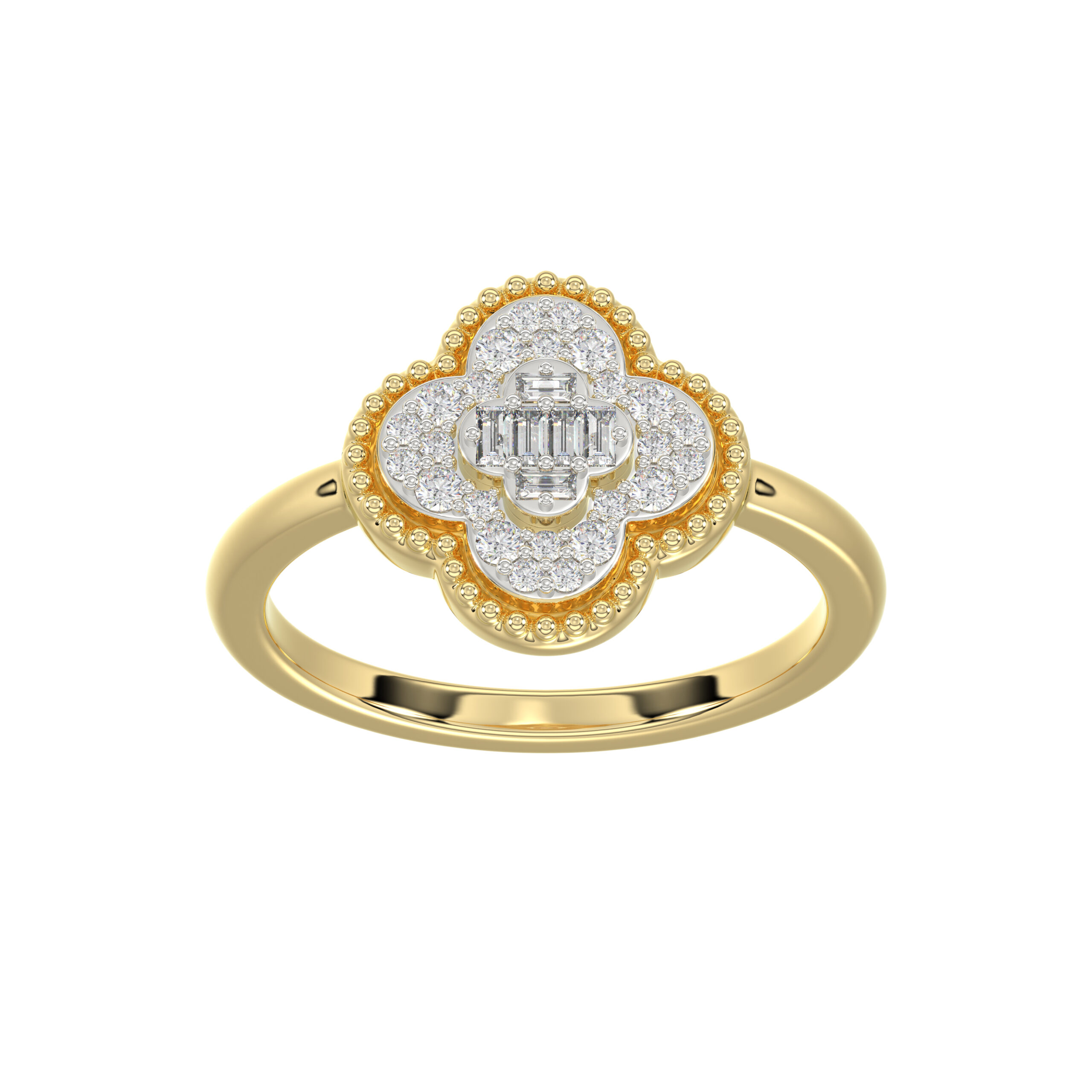 LADIES RING 0.25CT ROUND/BAGUETTE DIAMOND 14K YELLOW GOLD