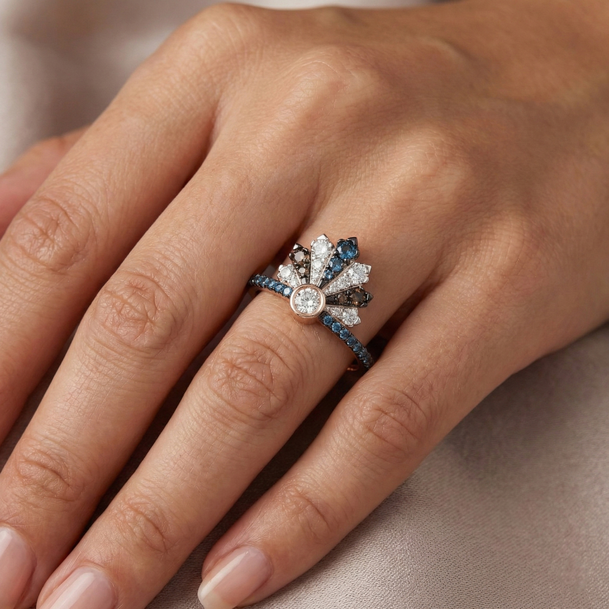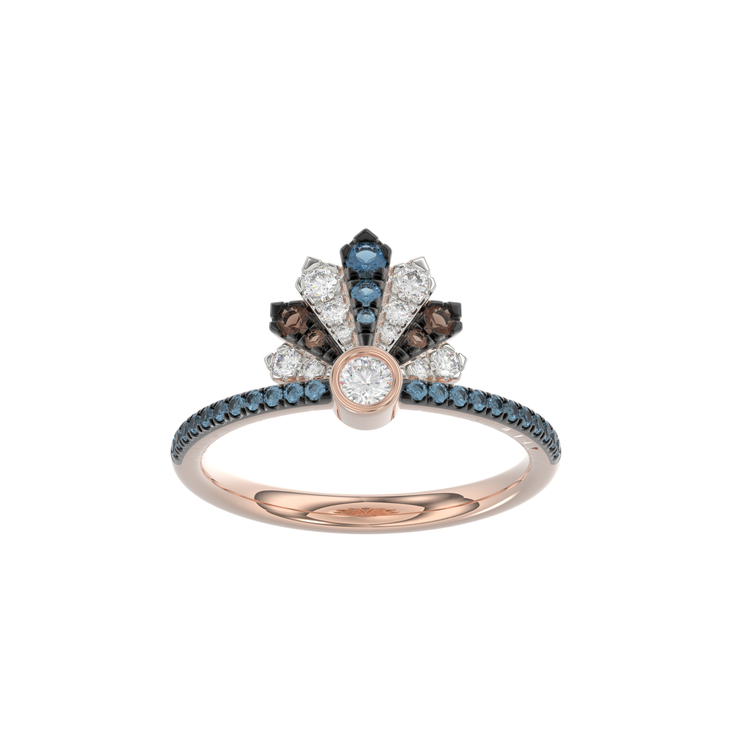 LADIES RING 0.50CT ROUND/ROUND BLUE/DARK BROWN DIAMOND 14K ROSE GOLD