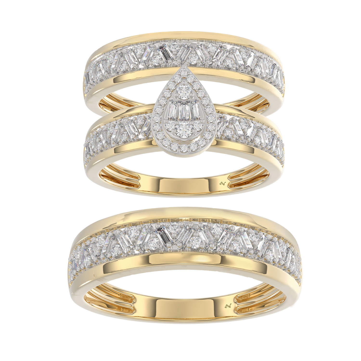 TRIOS SET 1.50CT ROUND DIAMOND 10K YELLOW GOLD
