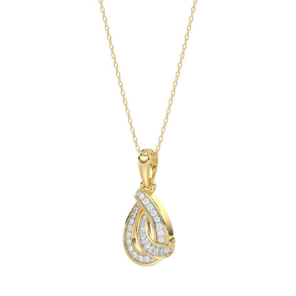 ELEGANCE 10K YELLOW GOLD 0.15CT TWISTED CIRCLE HEART & LADIES PENDANT ROUND DIAMOND WITH CHAIN